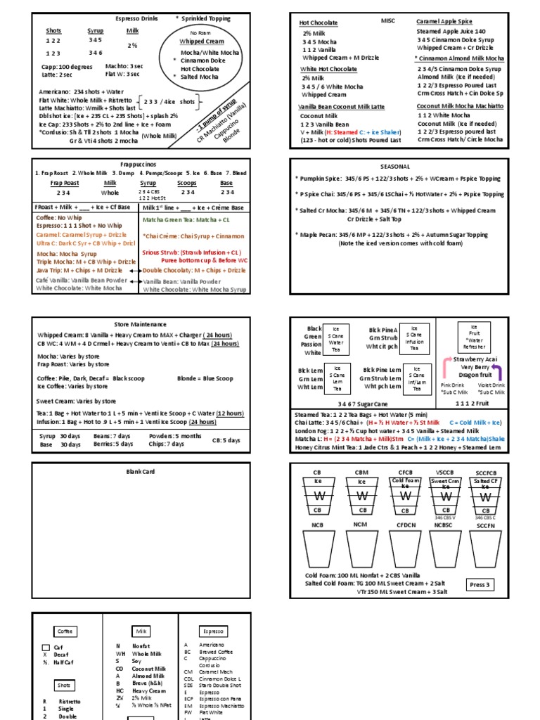 Starbucks Barista Cheat Sheet Pdf Tea Hot Drinks